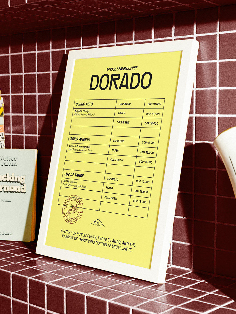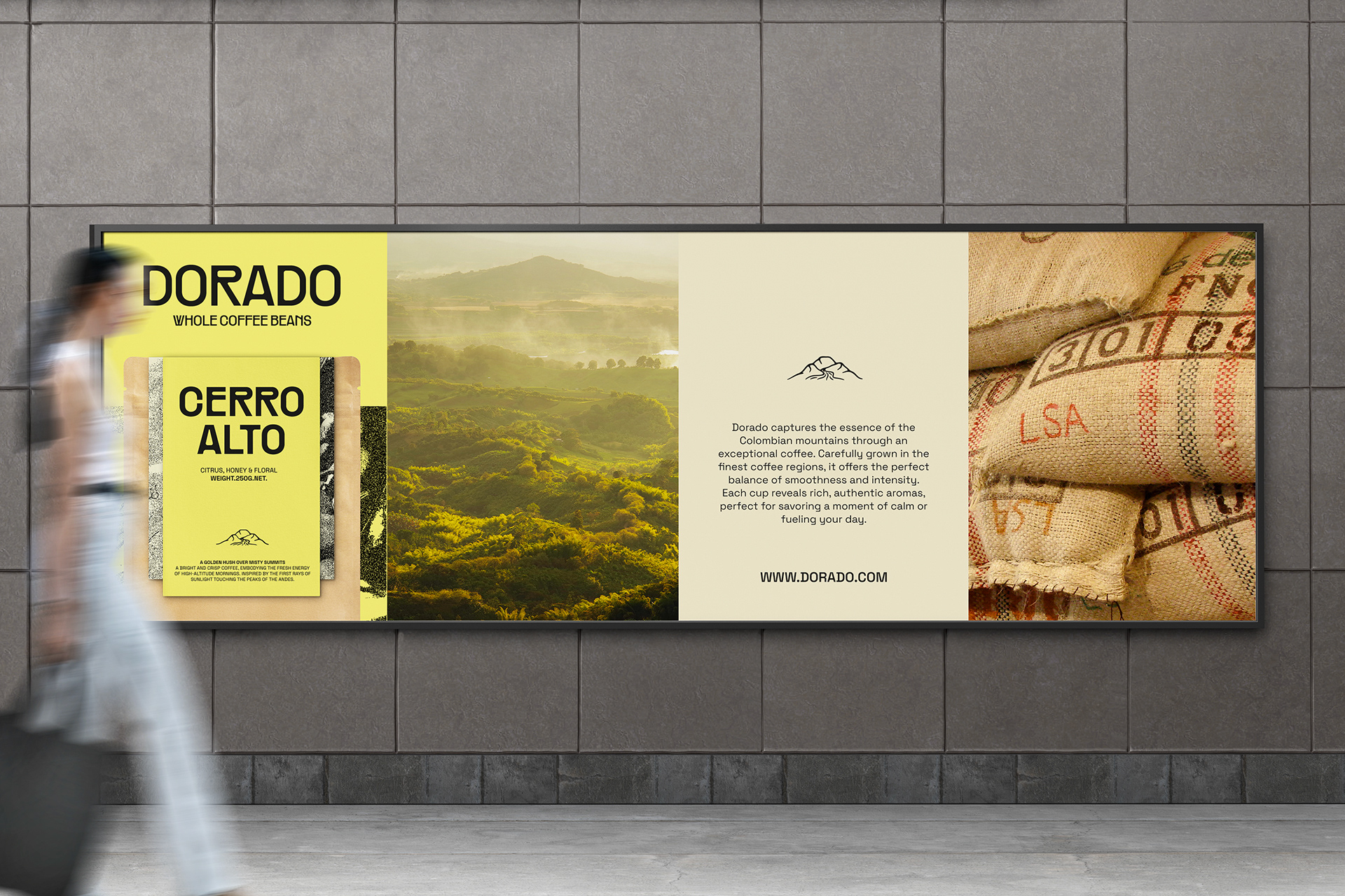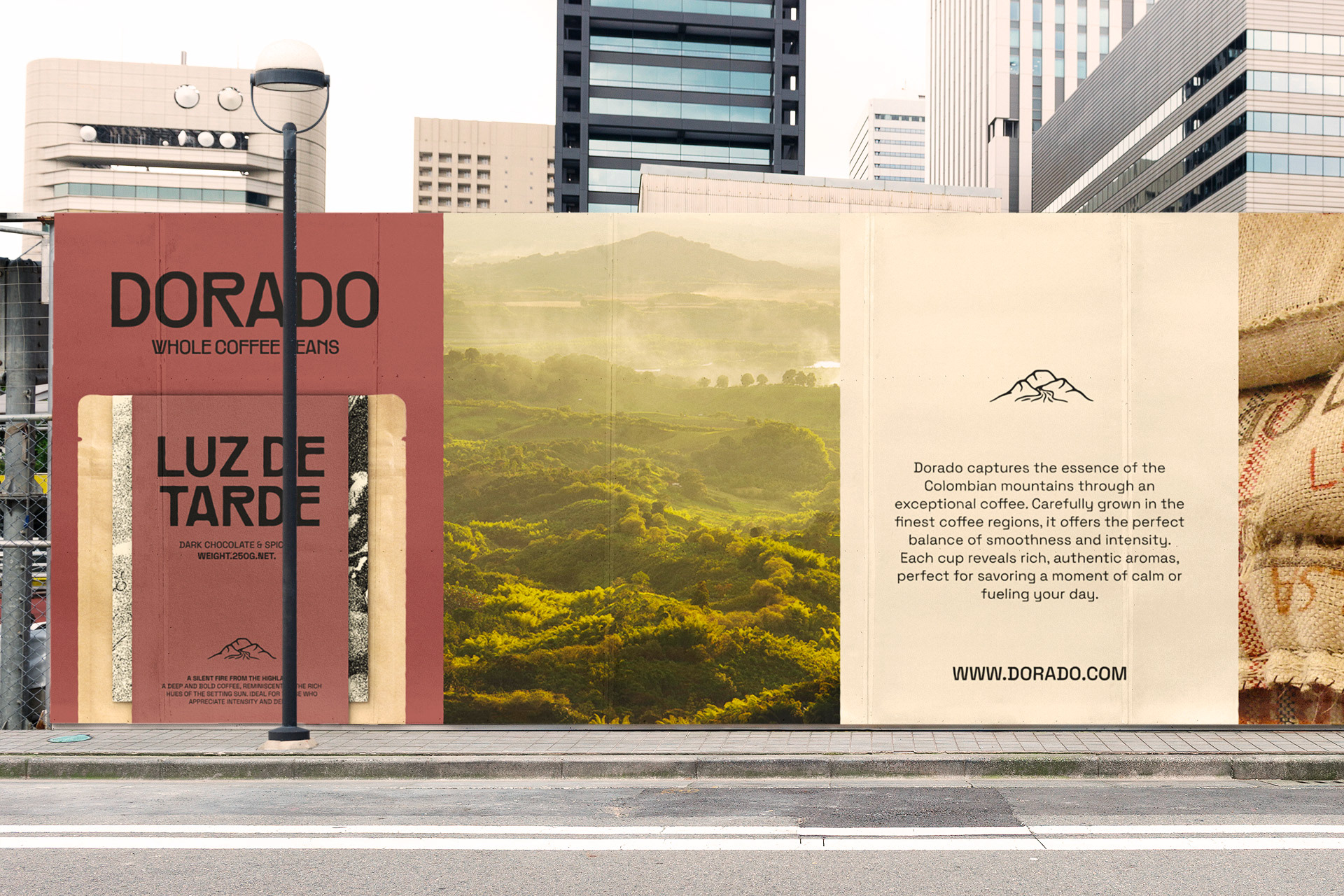 Dorado est un concept de marque de café inspiré des paysages colombiens. Le projet explore une identité visuelle et un système d'emballage ancrés dans l'authenticité, le savoir-faire artisanal et le rythme naturel, puisant son inspiration dans les textures des sacs d'exportation, la chaleur du soleil matinal et la profondeur des Andes.