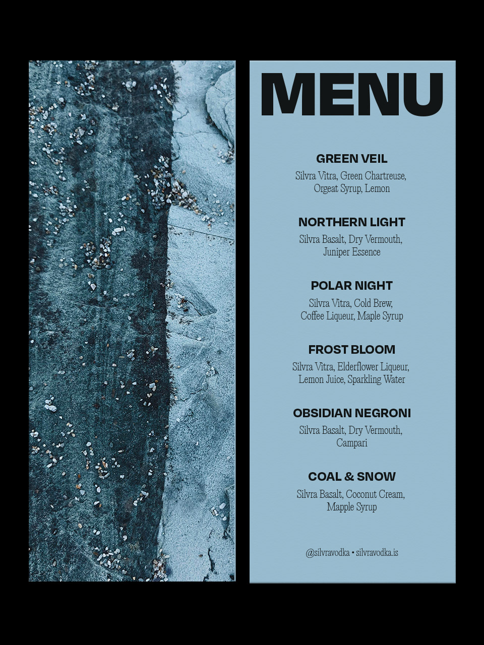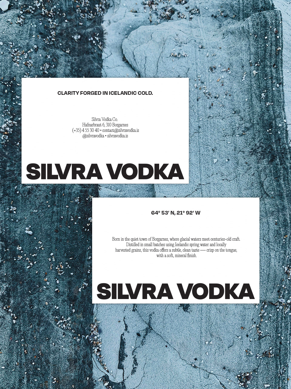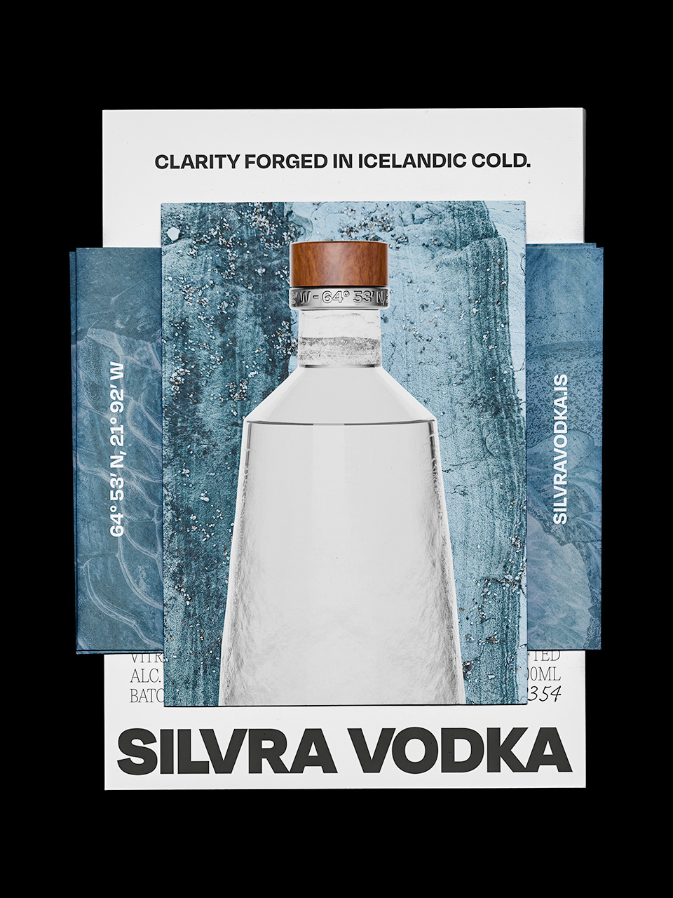 Silvra est un concept de marque pour une vodka islandaise haut de gamme, née de la glace et de la pierre. Son identité visuelle mêle une grille modulaire, une typographie minimaliste et un packaging 3D pour exprimer la pureté, l'élégance et la force tranquille de la nature à travers des formes épurées.